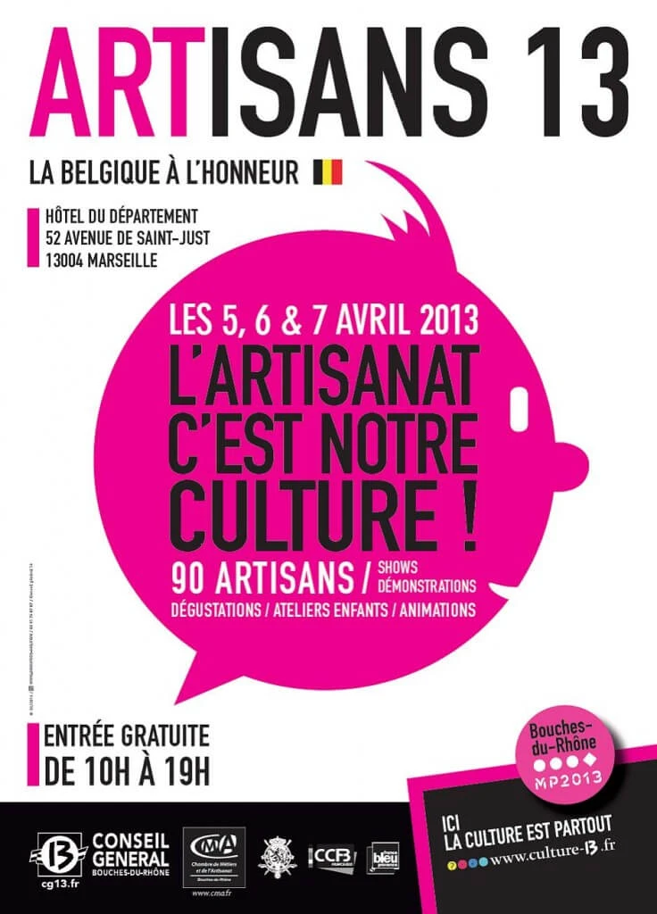 Nous avons le plaisir de vous convier à visiter la manifestation Artisan 13 organisée par le Conseil Général des Bouches du Rhône et la Chambre des Métiers de l’Artisanat qui se déroulera du 5 au 7 avril 2013 à l’Hôtel de Département.