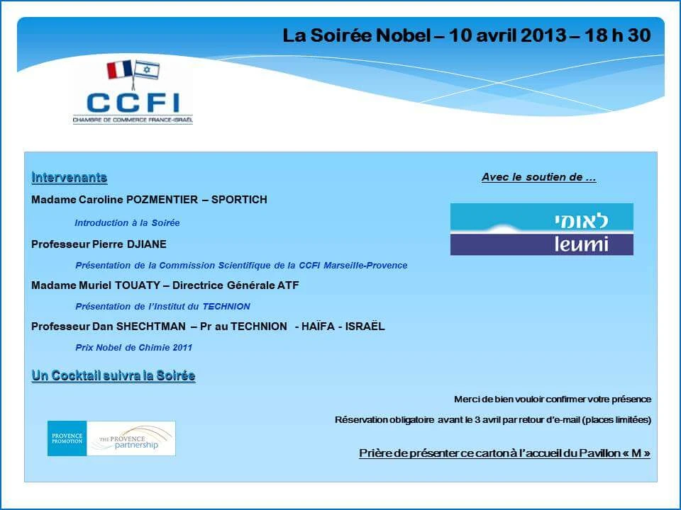 Chambre de Commerce France Israël Marseille Provence – Soirée Nobel le 10 avril 2013 au Pavillon M